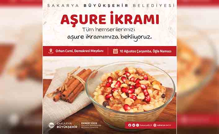 Sakarya Büyükşehir Belediyesi Sosyal Hizmetler Dairesi Başkanlığı tarafından Muharrem ayı münasebetiyle Aşure ikramı yapılacak. Çarşamba günü öğle namazı sonrası gerçekleştirilecek aşure ikramı, Orhan Cami ve Demokrasi Meydanı’nda gerçekleştirilecek.