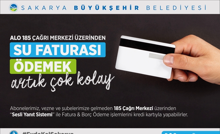 Aboneler 185 Çağrı Merkezi’ni arayarak “Sesli Yanıt Sistemi” sayesinde su faturalarını kredi kartıyla ödeyebilecekler.