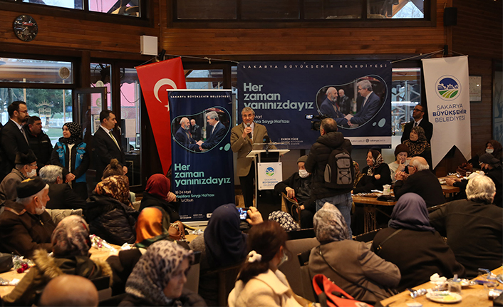 Sakarya Büyükşehir Belediye Başkanı Ekrem Yüce, Yaşlılar Haftası münasebetiyle Büyükşehir Belediyesi tarafından düzenlenen yemekte yaşlı vatandaşlarla bir araya geldi. ‘Her Zaman Yanınızdayız’ başlığı altında düzenlenen yemekte yaşlılara moral ve destek verildi. Programda yaşlılara çiçek dağıtıp tek tek hal ve hatırları soran Başkan Yüce, aynı zamanda talebi olan yaşlıların isteklerinin hemen yerine getirilmesi için talimat verdi. Yaşlıların her zaman başının tacı olduğunu söyleyen Başkan Yüce, onlar bizim atalarımız onların her anlarında yanında olarak her dertlerine derman olmalı ve hayatlarını kolaylaştıracak çalışmalara bugün olduğu gibi her zaman öncelik vermeliyiz ifadelerini kullandı.