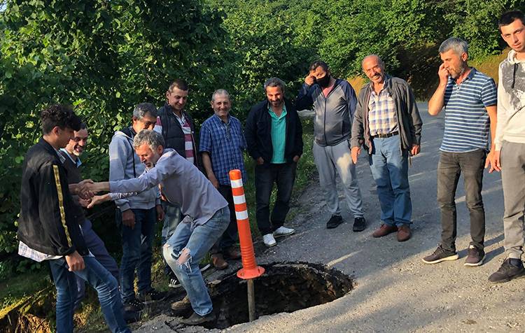 Yol kenarlarında toprak kaymaları yaşanmakta. O nedenle oldukça virajlı olan yolumuzu kullanırken kaza yapmamak için çok dikkatli gitmemiz gerekiyor. Çünkü bazı bölgelerde yolumuz ancak 1 araç geçişi genişliğinde oluyor. Karşıdan, virajlı yoldan bir araç geldiğinde aracı görmemiz mümkün olmuyor. Bizler fındık bahçelerimize yol yapın demiyoruz. 10 yıldır söz verilip yapılmayan yolların yapılmasını yetkililerden rica ediyoruz ” dedi.