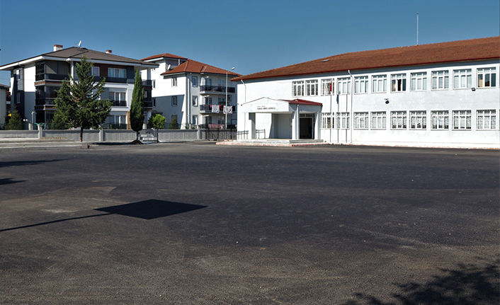 Belediyeden yapılan açıklamada çocukların teneffüslerde okul bahçesinde rahatça vakit geçirebilmeleri için ekiplerin asfalt çalışması yaptığı ifade edildi.