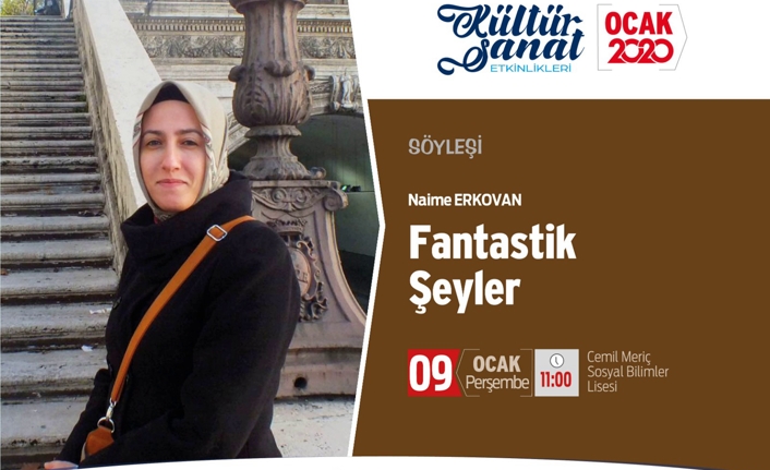 Adapazarı Belediyesi Kültür İşleri Müdürlüğü tarafından 9 Ocak Perşembe günü düzenlenecek ilk etkinlik Cemil Meriç Sosyal Bilimler Lisesi’nde Saat: 11.00’de başlayacak. Yazar Naime Erkovan’ın konuşmacı olduğu olarak katılacağı söyleşide Erkovan, “Fantastik Şeyler”adlı kitabını anlatacak.