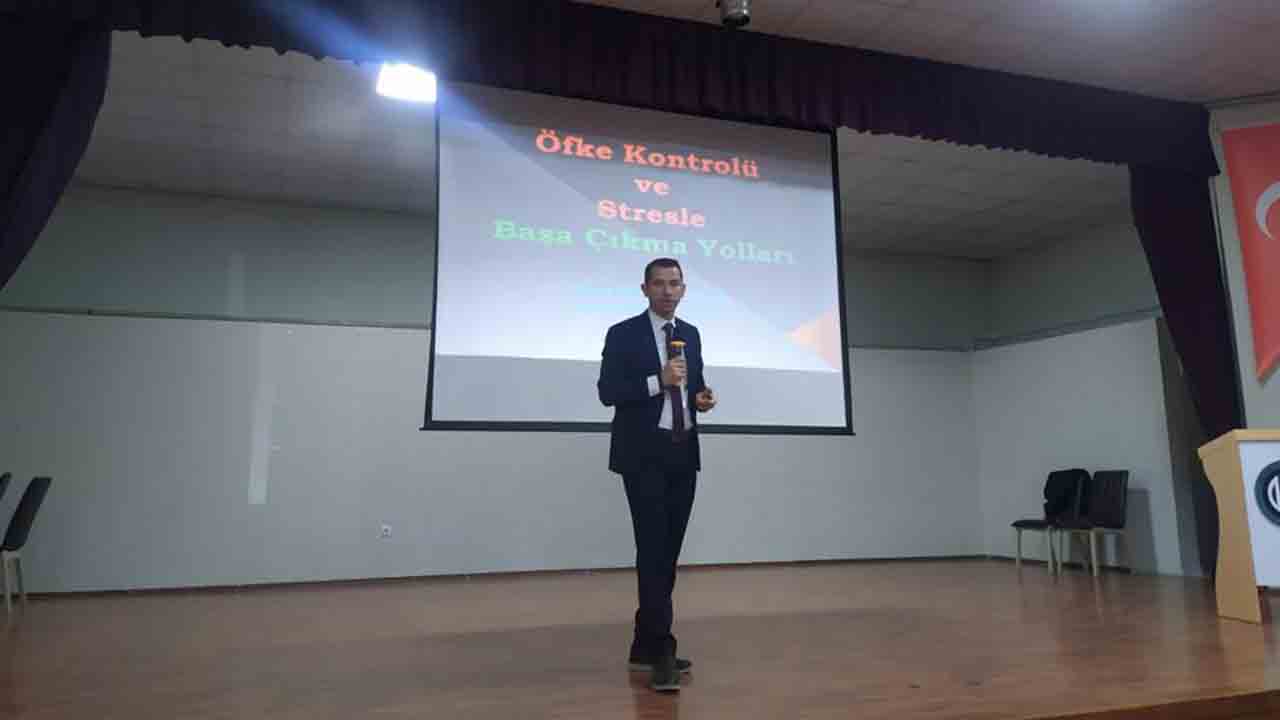 Öfke ve Stresin tanımları, kaynakları, etkili iletişim becerileri, öfke ve stresle baş etmede nelerin işlevsel olabileceği ve kullanılabilecek farkındalık egzersizleri başlıklarının ele alındığı çalışmada öğrenci ile iletişimin önemi de vurgulandı.