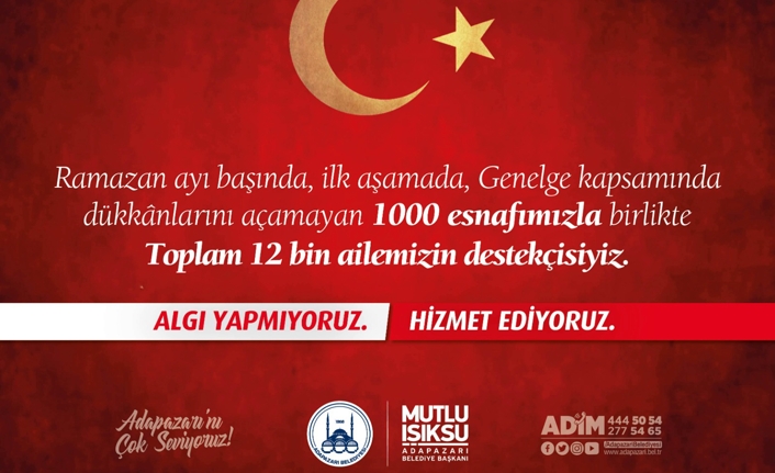 Başkan Işıksu, “Adapazarı’mızın kökü kardeşlik ile yoğrulmuştur. Paylaşmak kıymetlidir, sonucu bereket olur çok iyi biliyor ve Adapazarı’mızı çok seviyoruz. Ramazan başlangıcında, ilk aşamada, genelge kapsamında dükkânlarını açamayan 1000 esnafımızla birlikte 12 bin ailemizin destekçisiyiz. Algı yapmadan, milletimize hizmet etmeye devam edeceğiz.” dedi.