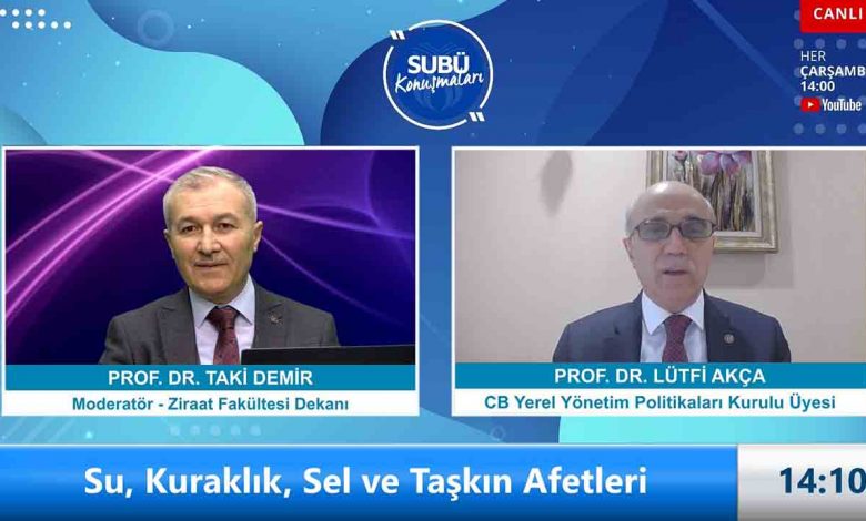 Sakarya Uygulamalı Bilimler Üniversitesi (SUBÜ) tarafından düzenlenen SUBÜ Konuşmaları’nın 45’inci konuşmacısı ‘Su, Kuraklık, Sel ve Taşkın Afetleri’ başlıklı söyleşiyle Cumhurbaşkanlığı Yerel Yönetim Politikaları Kurulu Üyesi Prof. Dr. Lütfi Akça oldu. Moderatörlüğünü Ziraat Fakültesi Dekanı Prof. Dr. Taki Demir’in üstlendiği söyleşide; Türkiye’nin su politikası, sel, taşkın ve kuraklık riskine karşı alınabilecek önlemler ile suyun tarım için önemi konuşuldu. Söyleşinin tamamı üniversitenin YouTube kanalı SUBÜ Haber’den tekrar izlenilebiliyor.