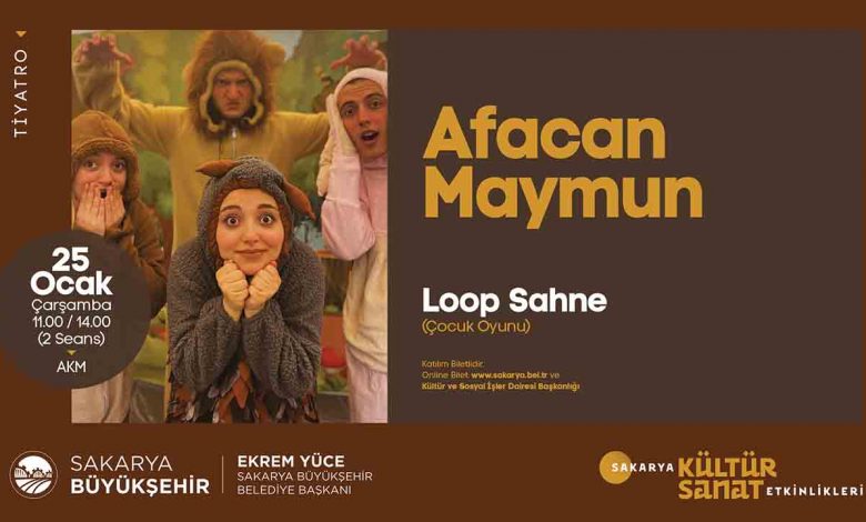 Sakarya Büyükşehir Belediyesi Ocak kültür sanat etkinlikleri tüm hızıyla devam ediyor. Bu kapsamda 25 Ocak Çarşamba günü saat 11.00 ve 14.00’da Loop Sahne tarafından sahnelenecek ‘Afacan Maymun’ isimli çocuk oyunu AKM’de minik izleyicilerle buluşacak. Kültür ve Sosyal İşler Dairesi Başkanlığından yapılan açıklamada, “Ara tatillerini keyifli değerlendirmeleri adına çocuk oyunlarını minik izleyicilerimizle buluşturuyoruz. Gösterimlerin biletli olduğu oyunlar için biletler www.sakarya.bel.tr adresinden veya Kültür ve Sosyal İşler Daire Başkanlığımızdan temin edilebilir” denildi.