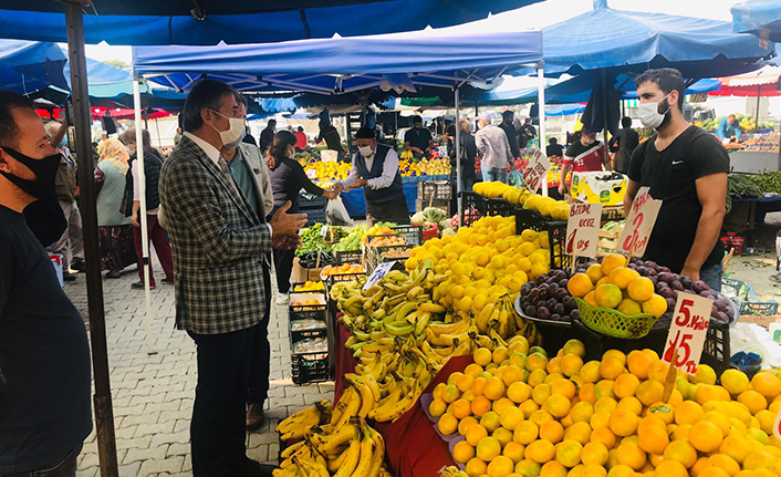 Vatandaşlarla da sohbet eden Alemdar, tezgahlardaki ürünleri de inceleyip esnafa ve vatandaşlara maske, mesafe ve hijyen kurallarına uyulması konusunda uyarılarda bulundu.