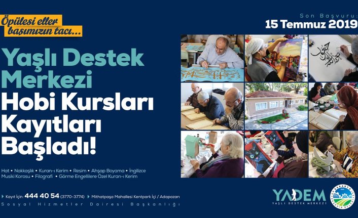 Sakarya Büyükşehir Belediyesi Sosyal Hizmetler Dairesi Başkanlığı bünyesinde faaliyet gösteren Yaşlı Destek Merkezi (YADEM) hobi kurslarında kayıtlar başladı. 65 yaş üstü yaşlıların yaşamlarını zenginleştirmek amacıyla oluşturulan hobi kursları ile renkli görüntüler ortaya çıkmaktadır. Yapılan açıklamada, “Hobi kursu kayıtları sadece 65 yaş üstü büyükler içindir. Kayıt yaptırmak isteyen vatandaşlar Donatım Park içerisindeki YADEM binasını ziyaret edebilir veya 444 40 54 (3770-3774) arayabilirler. Son kayıt 15 Temmuz Pazartesidir” ifadelerine yer verildi.