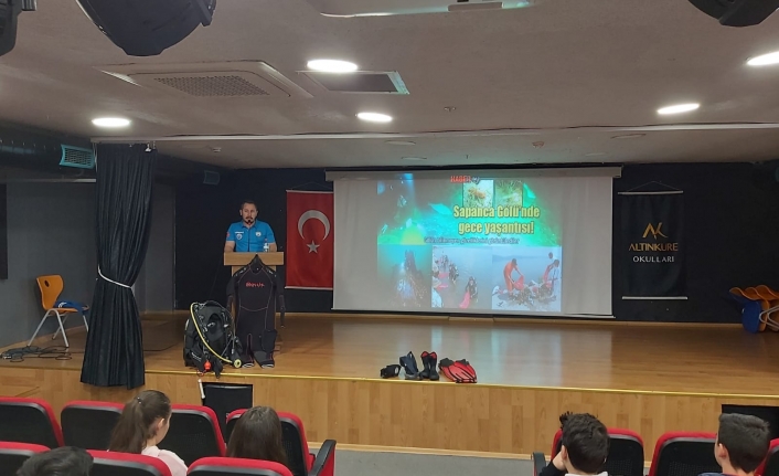 Altınküre Okulları konferans salonunda gerçekleştirilen etkinliğe konuşmacı olarak Sakarya Atlantis Dalış Eğitmeni Samet Karaca ve ekibi konuk oldu. Atlantis Dalış Eğitmeni olan Samet Karaca öğrencilere sualtı dünyası ve tüplü dalış eğitimi hakkında bilgiler verdi. Tüplü dalışın müthiş bir deneyim olduğunu belirten Samet Karaca, ‘’ Televizyonda izlediğiniz bir su altı belgeselini yaşamak gibisi yoktur. Emin olun su altına girdiğiniz an ve sonrasındaki her dalışınızda yeni bir dünya keşfetmiş gibi keyif alacaksınız’’ dedi.