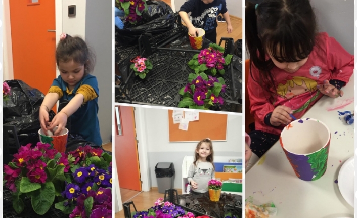 Altınküre Okulları Anasınıfı Çalışkan Arılar ve Neşeli Kelebekler Sınıfı Birleştirilmiş sanat ve Fen etkinliğinde 8 Mart Dünya Kadınlar Günü nedeniyle kıymetli anneleri için çiçek dikme etkinliği yaptılar. Önce saksılarını boyayan öğrenciler daha sonra kır menekşelerini vazoya diktiler.