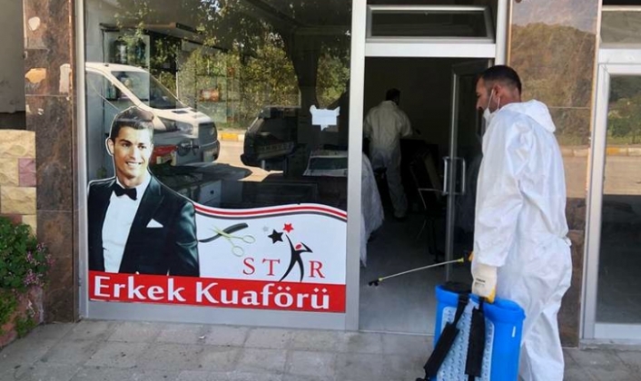 Bu kapsamda dezenfektasyon ekipleri, 11 Mayıs tarihi itibari ile belirlenen kurallar doğrultusunda iş başı yapacak olan berber ve kuaförlerin dezenfekte işlemlerine başladı. Halk sağlığının korunması için ekipler, iş yerlerini tek tek açarak dezenfekte ediyor.