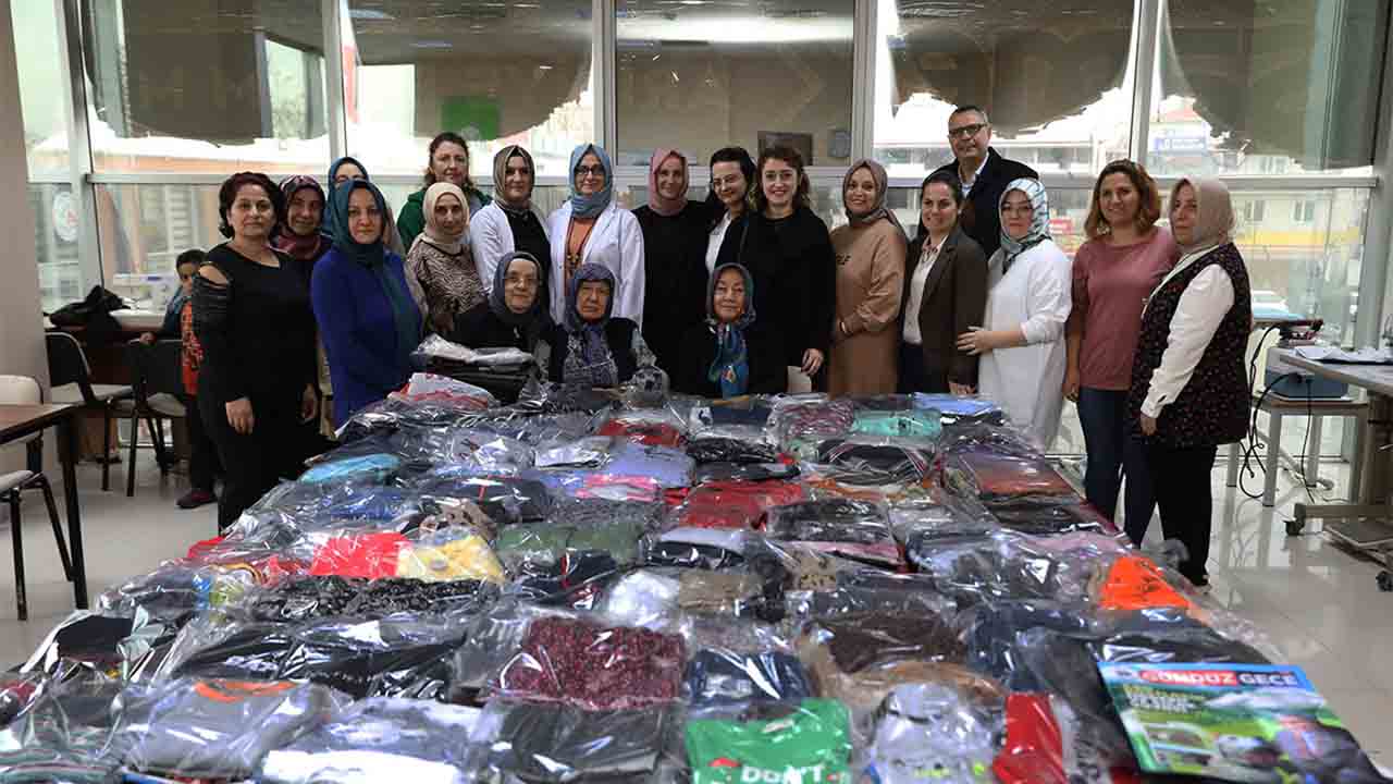Proje kapsamında dikiş derslerinde meydana gelen tekstil atıkları yeni ürünlere dönüştürülerek Büyükşehir Belediyesine ait sosyal mağazaya teslim edildi.