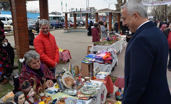 StanDları sırasıyla gezen Başkan Babaoğlu, “8 Mart Dünya Kadınlar Günü nedeniyle düzenlediğimiz, “2.Kadın Dayanışması” etkinliğinde el emeği göz nuru ürünlerini tezgah açarak satışa sunan ev hanımları aile ekonomilerine katkı sağlamaya devam etti. Gücüne güç katan kadınlarımız için bu tip etkinliklerin sayısını arttırmayı planlıyoruz. Etkinlikte alışveriş yaparak desteklerini esirgemeyen tüm vatandaşlarımıza teşekkür ediyorum. Aile ekonomilerine katkı sağlamaya çalışan kadınlarımızın bir araya gelerek düzenlediği etkinlik bu yılda çok güzel oldu” dedi.