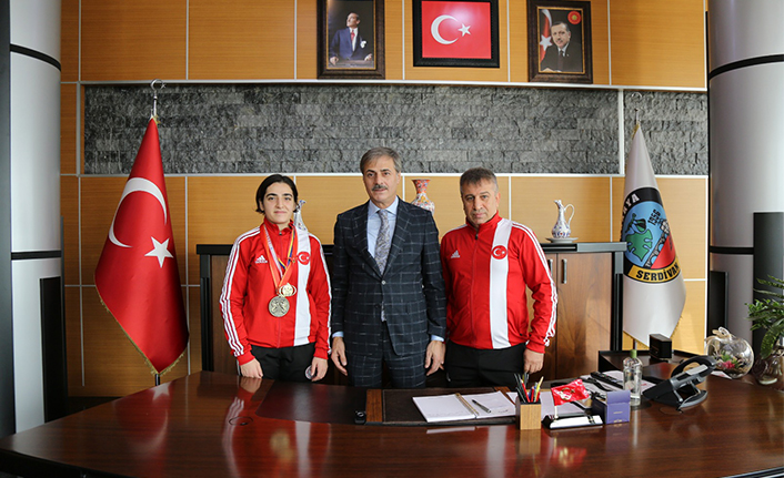Ece Asude gibi genç sporcuların başarılarının milletimizi gururlandırdığını söyleyen Başkan Alemdar, Sakaryalı sporcuların sporun tüm dallarında başarısının dikkat çekici olduğunu belirtti. Ece Asude’yi ve teknik ekibi tebrik eden Alemdar şampiyona altın hediye etti.