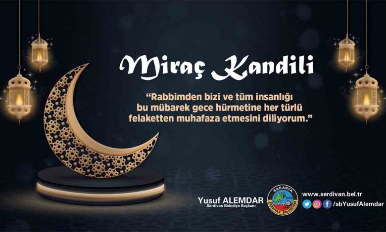 “Peygamber Efendimiz Hz. Muhammed’in (S.A.V.) Miraç mucizesinin gerçekleştiği bu mübarek gecede, üç ayların içerisinde, tövbe kapıları sonuna kadar açık. Miraç Kandilinin gündüzü ve gecesinde manevi dünyamızı aydınlatacağız. Hassas dönemlerden geçtiğimiz ve mucizelere tanıklık ettiğimiz şu günleri Rabbim, Miraç Kandilinin hürmetine, daha kolay atlatmamızı nasip eylesin. Bu vesileyle başta Serdivanlı hemşehrilerimizin ve tüm İslam âleminin Miraç Kandilini kutluyor, kandilin bütün insanlığa huzur ve mutluluk getirmesi, ülkemiz ve milletimiz için hayırlara vesile olmasını temenni ediyorum.”