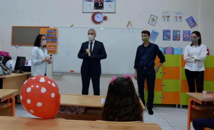 Ana sınıfı ve 1.sınıflarda yüz yüze eğitimin başlamasıyla birlikte Hendek Belediye Başkanı Turgut Babaoğlu, öğrencilerin ilk gün yaşadığı heyecana ortak oldu. KOVİD-19 tedbirleri kapsamında başlayan yeni eğitim ve öğretim yılının hayırlı olmasını dileyen Başkan Babaoğlu, okulun ilk gününde öğrenci ve öğretmenlere bal dağıttı. Salgın tedbirleri kapsamında okulları gezen Başkan Babaoğlu, eğitimin başladığı 32 okulda toplamda 2072 öğrenciye ve onların öğretmenlerine balların ulaştırılacağını söyledi. Dağıtılan kutu içinde 10 kaşık bal olduğunu anlatan Babaoğlu, “ Kutular içinde özel paketlenerek hazırlanan balları okullara teslim ediyoruz. Salgın nedeniyle öğrencilerimize öğretmenleri tarafından dağıtılacak. Afiyet bal olsun” dedi.