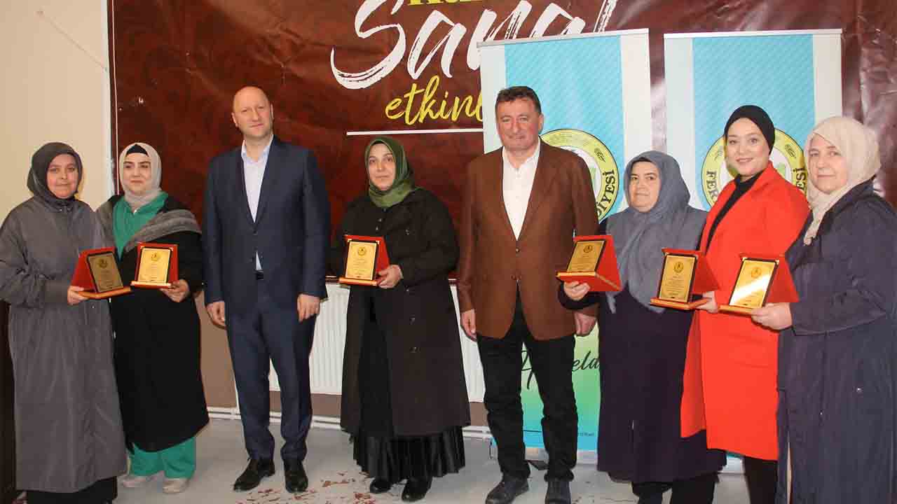 Ferizli’de meslek hayatlarının 15. yılını dolduran esnaf kadınlara da teşekkür plaketi verildi.