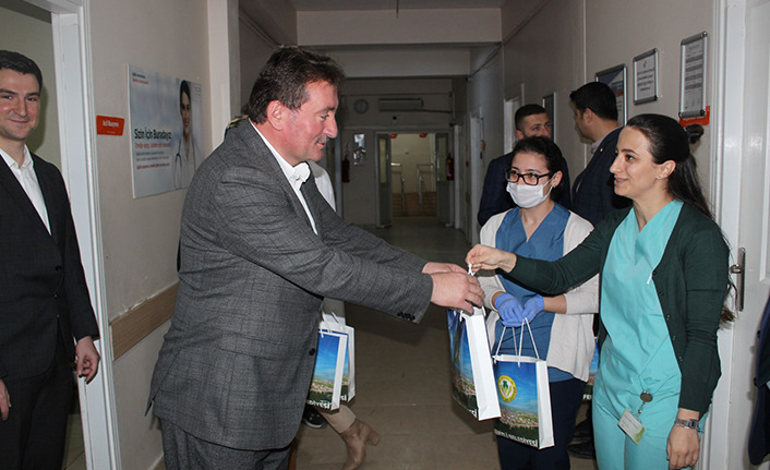 Hekimlerin ve tüm sağlık çalışanlarının Tıp Bayramını kutlayan ve çalışmalarında başarı dileyen Başkan Gündoğdu, sağlık çalışanlarına günün anısına hediye verdi.