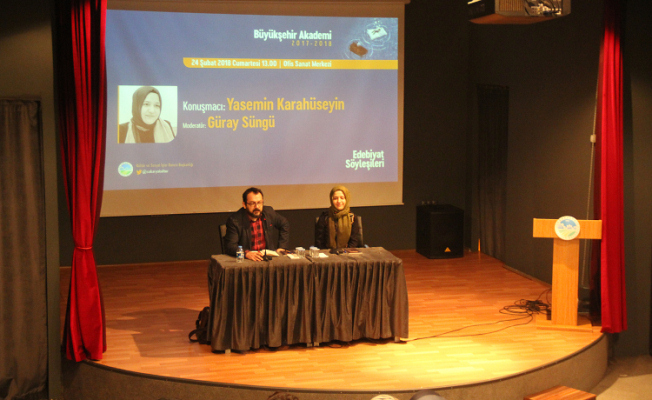 Sakarya Büyükşehir Belediyesi Kültür ve Sosyal İşler Dairesi Başkanlığı tarafından düzenlenen Büyükşehir Akademi’de dersler devam ediyor. Moderatörlüğünü Güray Süngü’nün yaptığı ‘Edebiyat Söyleşilerinin’ bu haftaki konuğu Yasemin Karahüseyin oldu. Katılımcılarla romana nasıl başladığını paylaşan Karahüseyin, edebiyat hakkındaki düşüncelerini belirtti.