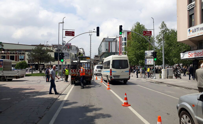 Şehirde yol çizgi çalışmaları yapılıyor