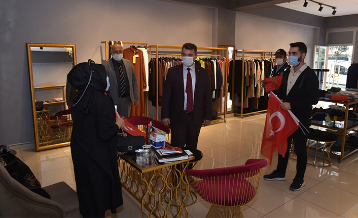 Başkan Sarı, Esnaf ve Vatandaşlara Türk Bayrağı Dağıttı