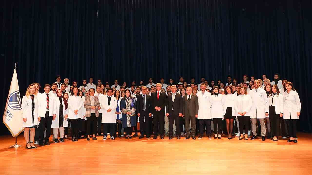 Yüce, “Bugün öğrencilerimiz beyaz önlüklerini giyerek hekim olma yolunda adım atıyorlar. İyi hekim olmaktan önce iyi insan olmayı her zaman vurguluyorum. İyi insan olmadan iyi hekim olunmaz. Aileler olarak sizler de beyaz önlüklerini giyecek olan çocuklarınız kadar heyecan ve gurur içerisindesiniz. Çünkü aileleri de çocuklarının mesleki olarak ilk mürüvvetlerinizi yaşıyorsunuz. Bizler de aynı mutluluk ve gururu yaşıyoruz, çünkü özveri ve fedakârlığın simgesi olan, leke kabul etmeyen beyaz önlüklerini giyecekler. Öğrencilerimizi ayrı ayrı kutluyor, hayatlarında başarılar diliyorum” diye konuştu.