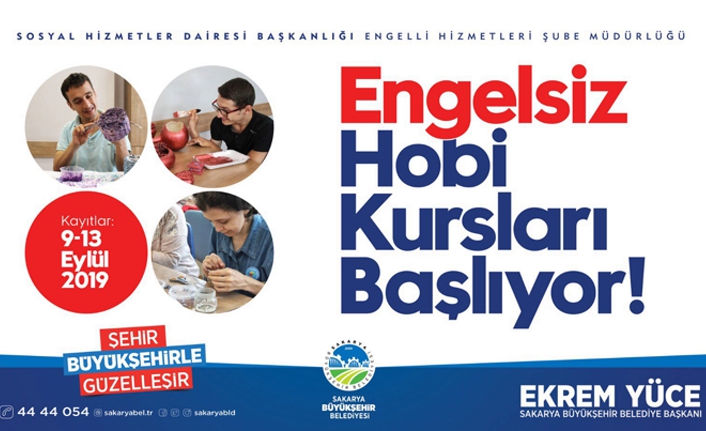 Sakarya Büyükşehir Belediyesi Sosyal Hizmetler Dairesi Başkanlığı Engelli Hizmetleri Şube Müdürlüğü bünyesinde faaliyetlerini sürdüren Engelsiz Hobi Kursunda yeni dönem başlıyor. Adapazarı, Akyazı, Sapanca, Geyve ve Karasu Sosyal Gelişim Merkezlerinde gerçekleştirilecek yeni dönem için kayıtlar 13 Eylül Cuma gününe kadar devam edecek. İlk ders zili ise 16 Eylül Pazartesi günü çalacak.