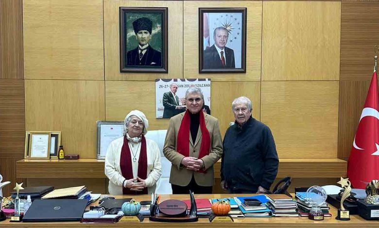 TÜMFİBED (Tüm Bürokratlar ve İş İnsaları Federasyonu) Tarım Bilimleri Komisyon Başkanı Prof. Dr. Engin Özhatay ve eşi Başkan Yardımcısı Prof. Dr. Neriman Özhatay, Büyükşehir Belediye Başkanı Ekrem Yüce’yi makamında ziyaret etti.