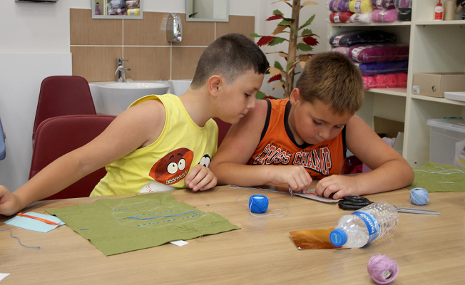 Sakarya Büyükşehir Belediyesi Sosyal Gelişim Merkezi yaz kurslarında eğitimler devam ediyor. Bu kapsamda Becerikli Eller Atölyesi’nde eğitimler gören 250 minik kursiyer, birbirinden renkli bez bebek, yastık, gözlük kılıfı, dekoratif ev süslerini kendi el becerileri ile hazırlıyor. Minik yeteneklerin kendi zevklerine göre oluşturduğu çeşitli ürünler görenlerin ilgisi çekiyor. Yaz kurslarında yeni bir alanda daha çalışmalar gerçekleştirmenin mutluluğunu yaşayan minik öğrenciler, yaptıkları ürünleri merkezde bulunan arkadaşlarıyla paylaştı. kocaali