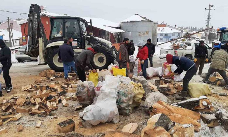 Bilecik’in Pazaryeri ilçesinde depremzedeler için toplanan odunlar ilk önce kesildi sonra çuvallanıp deprem bölgelerine yollandı.