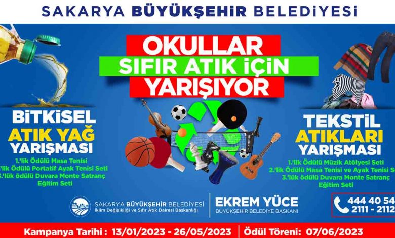 Sakarya Büyükşehir Belediyesi ve İl Milli Eğitim Müdürlüğü iş birliğiyle düzenlenen Bitkisel Atık Yağ ve Tekstil Atıkları toplama yarışmalarında yeni dönem başlıyor. Öğrencilerde sıfır atık farkındalığı oluşması, yetişen yeni neslin bitkisel atık yağ ve tekstil atıkları toplama bilinci kazanması ve atıkların çevreye ve insanlara vereceği zararların önüne geçilmesinin hedeflendiği yarışmalar için başvurular alınmaya başlandı.