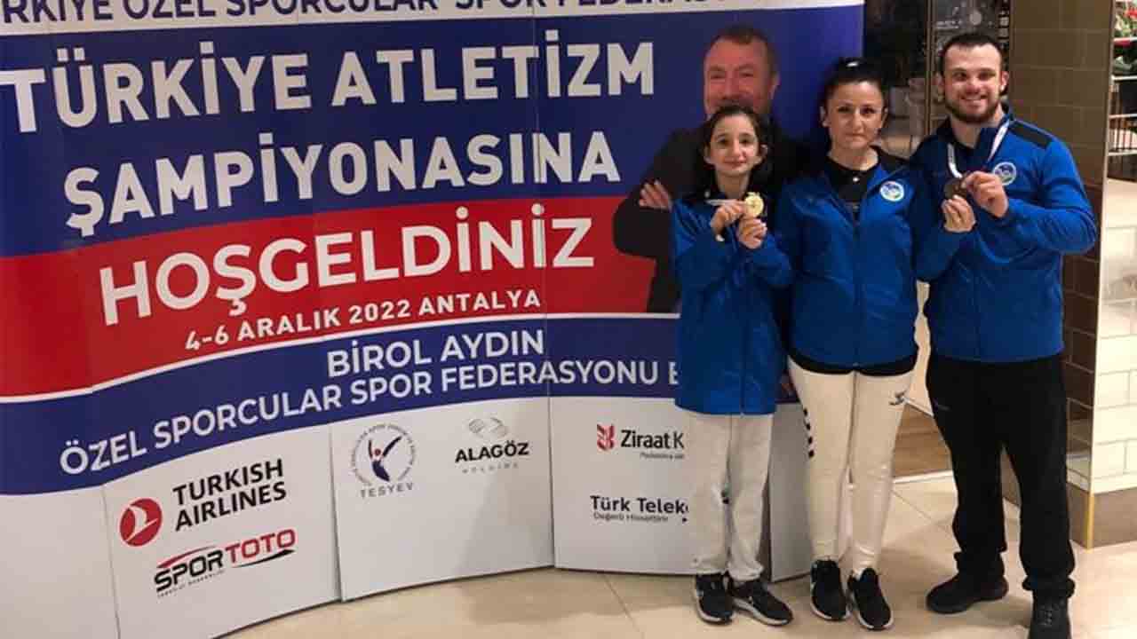 Büyükşehir Belediyesi atletizm özel sporcuları Zeynep Çalar ve Mücahit Gülşan, Antalya’da gerçekleştirilen Özel Sporcular Atletizm Türkiye Şampiyonası’nda farklı kategorilerde dereceler elde etti.