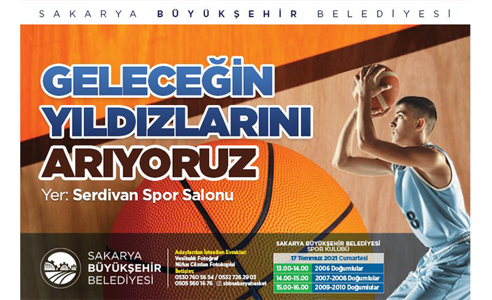 Sakarya Büyükşehir Belediyesi Spor Kulübü, her branşta başarılı sporcular yetiştirip ülkeye kazandırmak için çalışmalar yürütüyor. Büyükşehir, basketbol alanında geleceğin yıldızlarını keşfetmek için yeni bir program başlattı. “Geleceğin Yıldızlarını Arıyoruz” sloganuyla başlatılan organizasyon için başvurular başladı. En küçük 2006 ve en büyük 2010 doğumlu çocuklar, nüfus cüzdanı ve bir adet vesikalık fotoğrafla başvuru yapabiliyor.