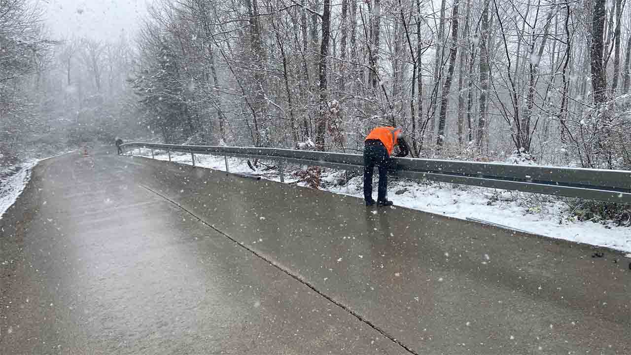 Büyükşehir Belediyesi, can ve mal kaybını önlemek için şehrin trafik ağında özellikle kırsal bölgelerdeki virajlı yolları kar, kış demeden çelik bariyerle çeviriyor.
