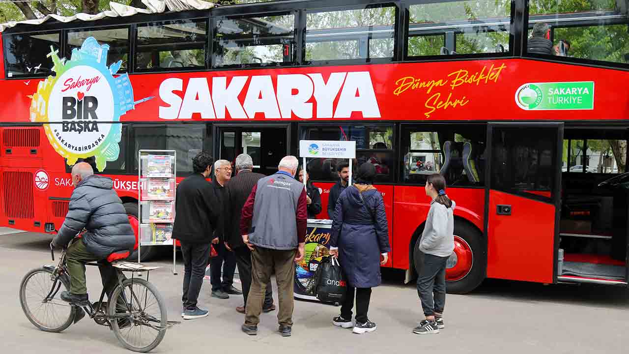 2 katlı olan ve turlar için dizayn edilen otobüs, 15-22 Nisan Turizm Haftası sebebiyle Kitap Sokağı’nda tanıtıma açıldı. Kurulan stantta Sakarya’nın turizm noktaları, doğal güzellikleri ve adım adım her noktası anlatıldı. Burayı ziyaret eden vatandaşlar, şehrini keşfetmek için yeni planlarının altyapısını oluşturdu.