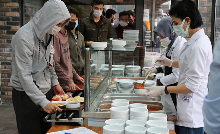 Pandemi sürecinden dolayı evlerinden uzakta ramazanı ayını geçirmek zorunda olan yabancı öğrenciler ve staj için Sakarya’da kalan öğrenciler sosyal mesafe ve hijyen kurallarına uygun, her masada iki öğrenci olacak şekilde oturma planının düzenlendiği yemekhanelerde öğrenci beslenme yardımlarını kullanarak iftar ve sahurlarını yapmaya devam ediyor. Ailelerinden uzakta iftar açmak zorunda kalan öğrencilerin kendilerini yalnız hissetmemeleri ve aile sıcaklığı vermek için öğrencilerle, İl Müftüsü Hasan Başiş ve Gençlik ve Spor İl Müdürü Arif Özsoy iftar yemeğinde bir araya geldi.