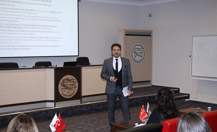 CMK Atölye Çalışmaları kapsamında ‘7188 Sayılı Yasa ile Ceza Muhakemesinde Güncel Değişiklikler’ konusunu anlatan Av. Alim Mert, “Yeni yasa ile önemli değişiklikler yapıldı ve ceza yargılamalarındaki maddi gerçek arayışının yanı sıra toplumsal barış ve uzlaştırmaya yönelik bir anlayış değişikliğinin geliştiğini söyleyebiliriz” dedi.