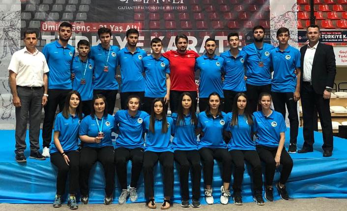 Sakarya Büyükşehir Belediyesi Spor Kulübü Karate Takımı 27-30 Haziran tarihlerinde Gaziantep’te Ümit, Genç ve 21 Yaş Altı Türkiye Karate Şampiyonasına katıldı. 17 sporcu ile şampiyonaya katılan Büyükşehir Belediyesi Karate Takımı toplam 4 madalya ile şampiyonayı tamamladı. Büyükşehirli sporculardan 21 yaş altı erkekler 60 kiloda kategorisinde Furkan Korkmaz gümüş madalya alırken 21 yaş altı erkekler +84 kiloda İsmail Hakkı Balıkçıoğlu, 21 yaş altı bayanlar +68 kiloda Vahide Köse ve genç erkekler 76 kiloda Ata Seymen Fidan bronz madalya kazanarak kürsüye çıkma başarası gösterdi. Gençlik ve Spor Hizmetleri Dairesi Başkanlığı’ndan yapılan açıklamada, “Gaziantep’te düzenlenen Ümit, Genç ve 21 Yaş Altı Türkiye Karate Şampiyonasında derece elde eden tüm sporcularımızı kutlar, başarılarının devamını dileriz” ifadelerine yer verildi.