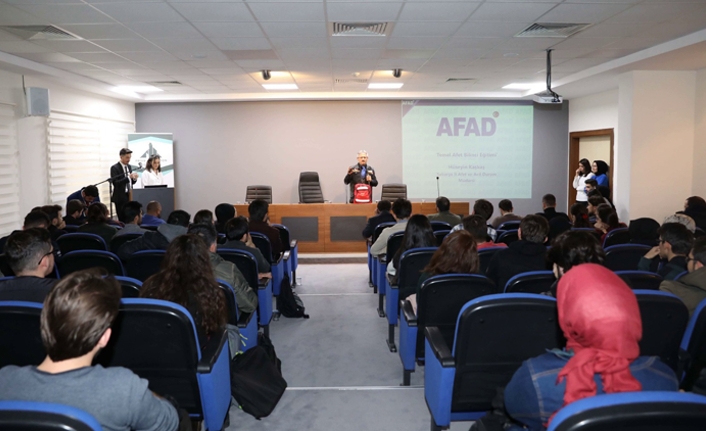 Konferansta söz alan AFAD İl Müdürü Hüseyin Kaşkaş, Sakarya’da ve ülkemizde meydana gelen afet türleri, olası afet ve acil durumlarda neler yapılabileceği ve hangi doğru davranış modellerini uygulamamız gerektiğini öğrencilere aktardı. Kaşkaş “Peki vatandaşlar olarak afetlere hazır mıyız? Örneğin bir afet çantamız, DASK’ımız var mı? Toplanma alanlarını biliyor muyuz? Bir yangın tüpümüz var mı? Afet eğitimleri alıp bilinçlendik mi?” diyerek katılımcılara sunumlarla eksiklikleri ve nasıl hazırlanılması gerektiğini de anlatarak öğrencileri AFAD gönüllüsü olmaya davet etti.