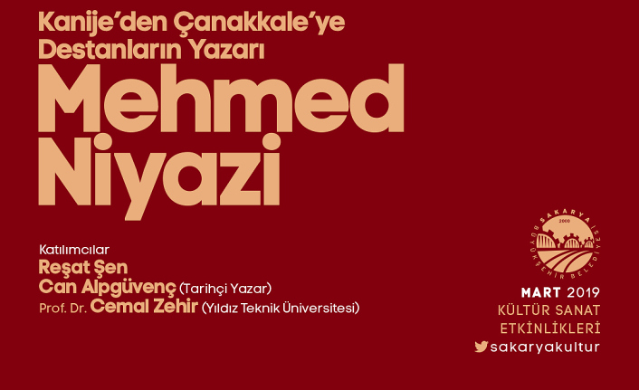 Sakarya Büyükşehir Belediyesi Mart Kültür-Sanat Etkinlikleri ‘Kanije’den Çanakkale’ye Destanların Yazarı Mehmed Niyazi’ paneli ve anma programı ile devam edecek. 21 Mart Perşembe günü saat 19.30’da AKM’de gerçekleştirilecek panele Reşat Şen, Can Alpgüvenç ve Prof. Dr. Cemal Zehir konuşmacı olarak katılacak. Kültür ve Sosyal İşler Dairesi Başkanlığı tarafından yapılan açıklamada, “Mart Kültür Sanat Etkinliklerimiz ‘Kanije’den Çanakkale’ye Destanların Yazarı Mehmed Niyazi’ paneli ve anma programı ile devam edecek. Tüm hemşehrilerimiz davetlidir” ifadelerine yer verildi. kocaali