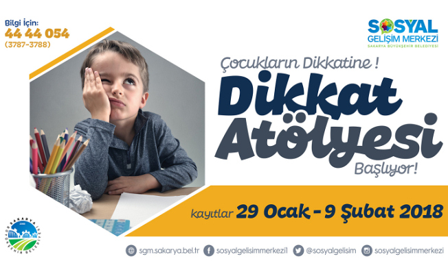 Sakarya Büyükşehir Belediyesi Sosyal Hizmetler Dairesi Başkanlığı Aile ve Çocuk Hizmetleri Şube Müdürlüğü tarafından çocuklara yönelik ‘Dikkat Atölyesi’ projesi hayata geçiriliyor. Atölye, çocukların dikkat dağınıklığı ve konsantrasyon bozukluğuna yönelik çözümler üretecek.