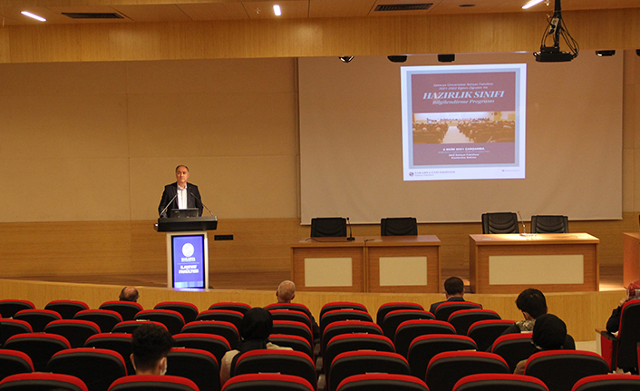 Hazırlık Sınıfları Koordinatörü Doç. Dr. Hamza Ermiş de konuşmasına derslerde devamlı olunmasının ve gerekli yükümlülüklerinin vaktinde yerine getirilmesinin önemini vurgulayarak başladı. Öğrencilerin derslerle ilgili çok kolay ya da çok zor şeklinde bir yanılgıya kapılmadan dersleri takip edip gayret gösterdiklerinde muhakkak başarılı olacaklarının altını çizerek konuşmasını sürdüren Doç. Dr. Hamza Ermiş, daha sonra önceki yıllardaki başarı durumları, hazırlık sınıfındaki eğitim-öğretim programı, takviye kursları, yıl içi etkinlikleri ve yurt dışı faaliyetleri gibi konularla ilgili öğrencilere bilgi verdikten sonra konuşmasını sonlandırdı. Ardından sözü alan Öğr. Gör. Hülya Afacan hazırlık programında uygulanan kur sistemi hakkında ayrıntılı bilgi paylaştı.