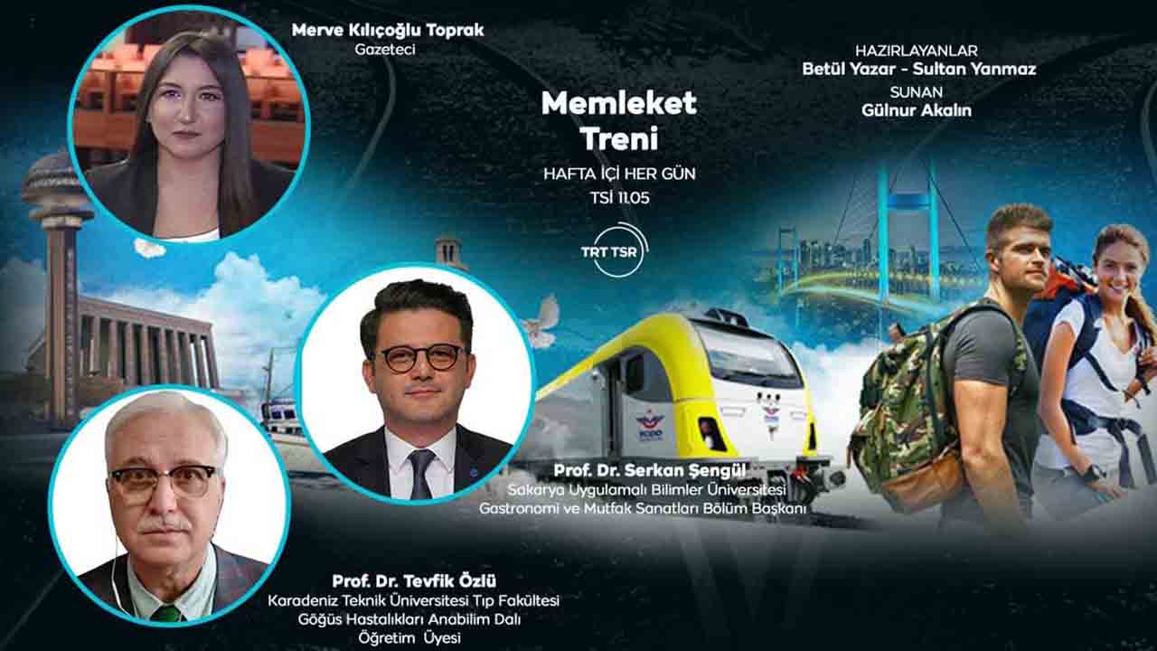 Sakarya Uygulamalı Bilimler Üniversitesi (SUBÜ), Turizm Fakültesi Gastronomi ve Mutfak Sanatları Bölüm Başkanı Prof. Dr. Serkan Şengül, Türkiye Radyo Televizyon Kurumu (TRT), Türkiye’nin Sesi Radyosu’nda (TSR) yayınlanan ‘Memleket Treni’ programının canlı yayın konuğu oldu. Sunucu Gülnur Akalın’ın sorularını cevaplayan Şengül, Avrupa Birliği’nin (AB) Türk dönerini geleneksel ürün adı olarak tescile hazırlanmasına ilişkin değerlendirmelerde bulundu.
