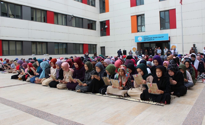 Barış Pınarı Harekatı kahramanlarının başarısı ve selameti için okul bahçesinde toplanarak toplu Hatim yaptılar. Okuldaki tüm öğrenci ve öğretmenler Kur’an-ı Kerim okuyarak 4 adet hatim ve 150 adet Fetih Suresi okuyarak sınırımızda teröristlere karşı mücadele eden Mehmetçiğe manevi destekte bulundular.