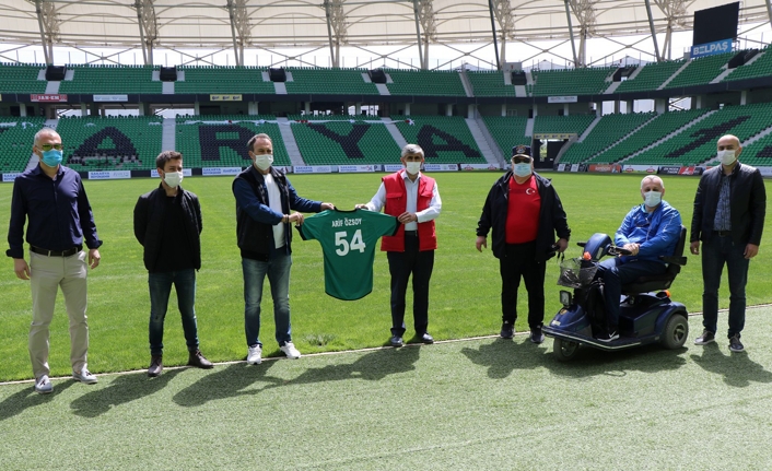 Sakarya Ampute Engelliler Spor Kulübü Derneği Başkan’ı Sinan Panta , Gençlik ve Spor İl Müdürü Arif Özsoy’a 54 numaralı Arif Özsoy yazılı forma hediye ederek, engellilere verdiği desteklerden dolayı teşekkür etti. Bedensel Engelliler İl Temsilcisi Selim Özen de ;” Engelli sporculara yaşayan stadın kapısını engelli sporculara açan Gençlik ve Spor İl Müdürü Arif Özsoy’a , tüm engelli vatandaşlarımız teşekkür ediyorum “dedi.