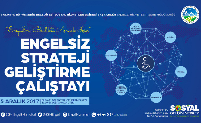 Sakarya Büyükşehir Belediyesi Sosyal Hizmetler Dairesi Başkanlığı tarafından toplumdaki engelli vatandaşların engellerini birlikte aşmaya yardımcı olmak için ‘Engelsiz Strateji Geliştirme’ başlıklı çalıştay düzenlenecek. Sosyal Gelişim Merkezi’nde ve Ramada Otel’de gerçekleşecek olan çalıştay hakkında bilgiler paylaşan Sosyal Hizmetler Dairesi Başkanı Davut Yüce, programa tüm vatandaşları davet etti.