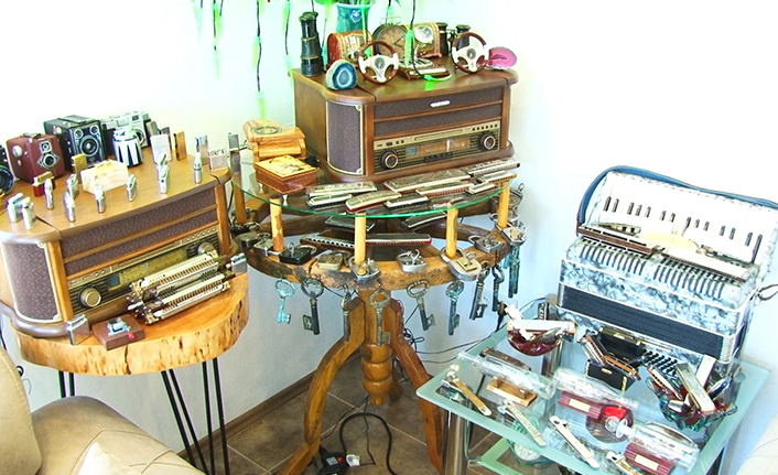 Burada 40 yıl boyunca çalışan Çelik, eline geçen her ürünü antika olacağı düşüncesiyle evinin bir köşesine koydu. Topladığı ürünleri yıldan yıla ülkesine getiren antika meraklısı, Türkiye’deki evini 700’den fazla antika ürünle adeta müzeye çevirdi. Parçalar arasında saat, radyo, mızıka, kantar, ustura, vazo, kumanya, mekik makinası ve buna benzer birçok ürün yer alıyor. Antika ürünleri evin dört bir yanına büyük bir özenle yerleştiren Çelik’e misafirlik için gelen dostları kapıdan girdiklerinde bu manzara karşısında büyük şaşkınlık yaşıyor.