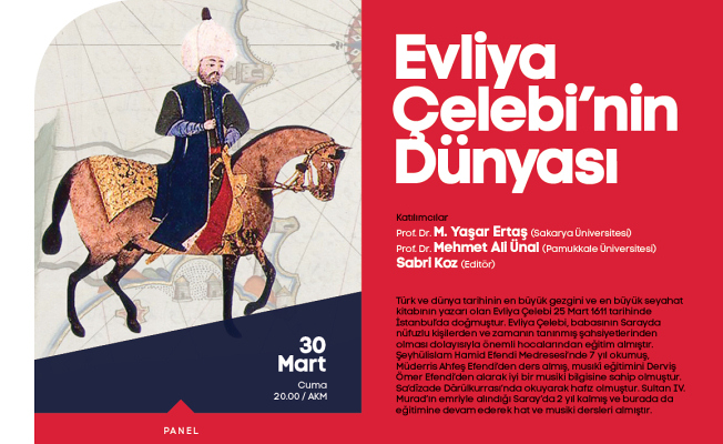 Sakarya Büyükşehir Belediyesi Mart Kültür-Sanat Etkinlikleri ‘Evliya Çelebi’nin Dünyası’ paneli ile sona erecek. 30 Mart Cuma günü saat 20.00’da AKM’de gerçekleştirilecek olan panele, Prof. Dr. Yaşar Ertaş, Prof. Dr. Mehmet Ali Ünal ve Sabri Koz konuşmacı olarak katılacak. Kültür ve Sosyal İşler Dairesi Başkanlığı tarafından yapılan açıklamada, “Mart Kültür Sanat Etkinliklerimiz ‘Evliya Çelebi’nin Dünyası’ panel ile sona erecek. Tüm hemşehrilerimiz panelimize davetlidir” ifadelerine yer verildi.