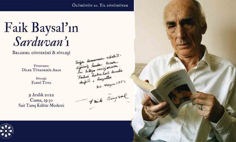 9 Aralık 2022 Cuma günü Sait Tanış Kültür Merkezinde Saat 19.30’da başlayacak programda; Şair ve Yazar Faik Baysal’ın yaşamı, ilk kitabı ‘Sarduvan’ romanı üzerinden, tarih doktoru Dilek Türkdemir Akay’ın hazırladığı belgesel ve söyleşi anlatılacak.