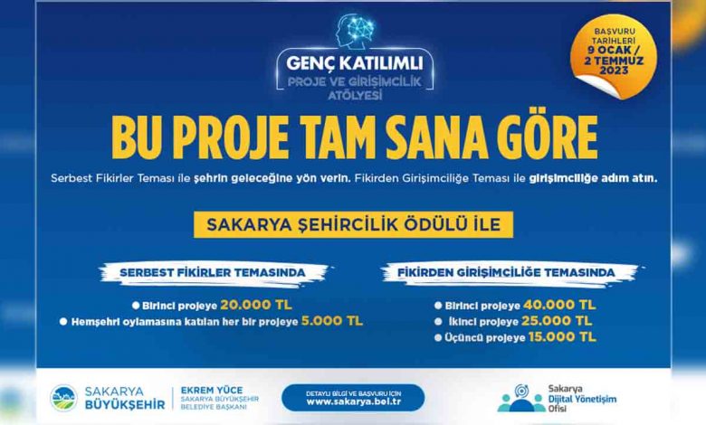 Büyükşehir Belediyesi geleceğin Sakarya’sını genç fikirlerle hazırlıyor. Bu yıl ikincisi düzenlenen ödüllü Genç Katılımlı Proje ve Girişimcilik Atölyesi Fikir Yarışması için son başvuru tarihi 2 Temmuz Pazar. Serbest Fikirler ve Fikirden Girişimciliğe olmak üzere 2 temada düzenlenecek yarışmada kazananlara para ödülü verilecek.